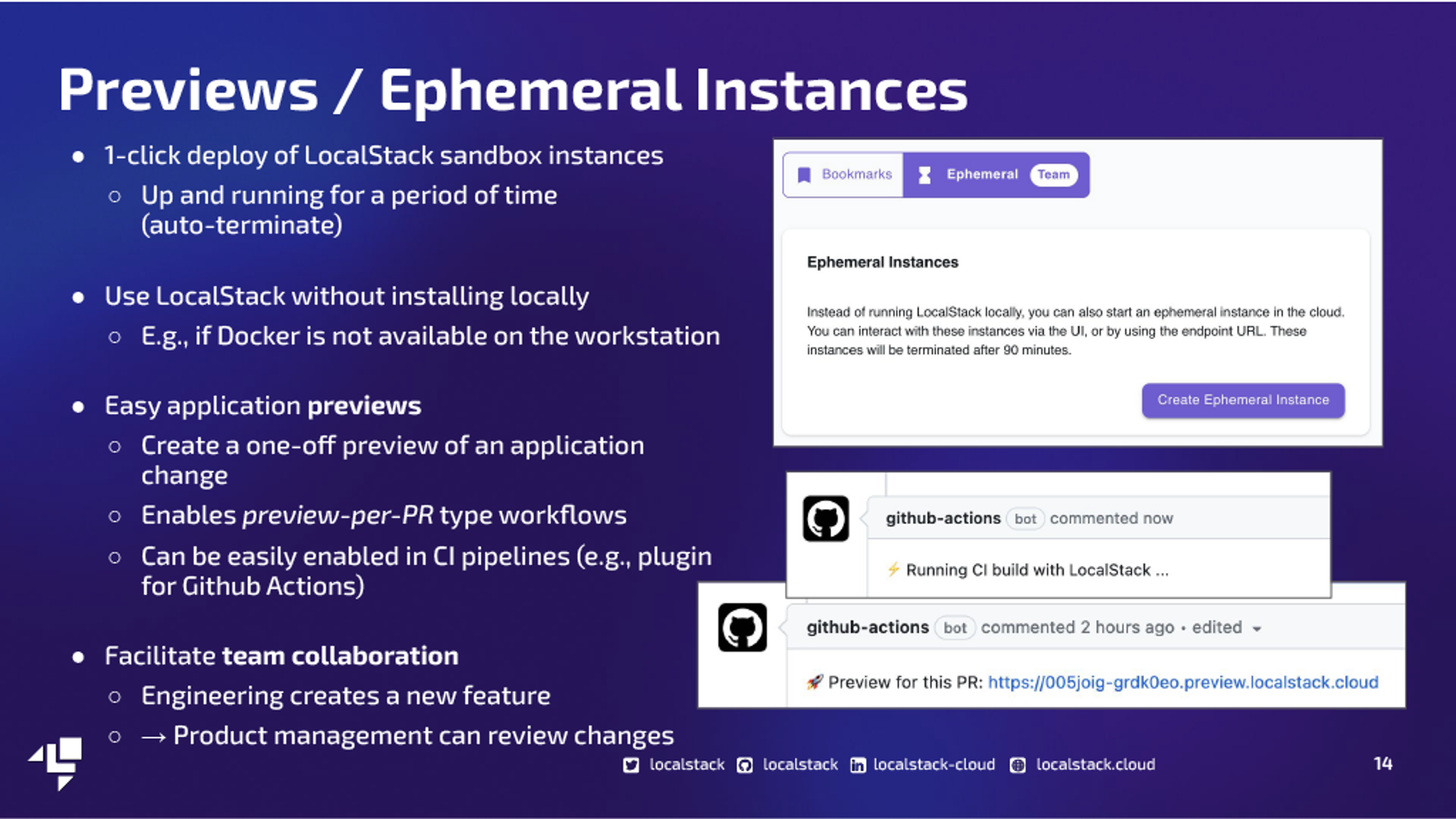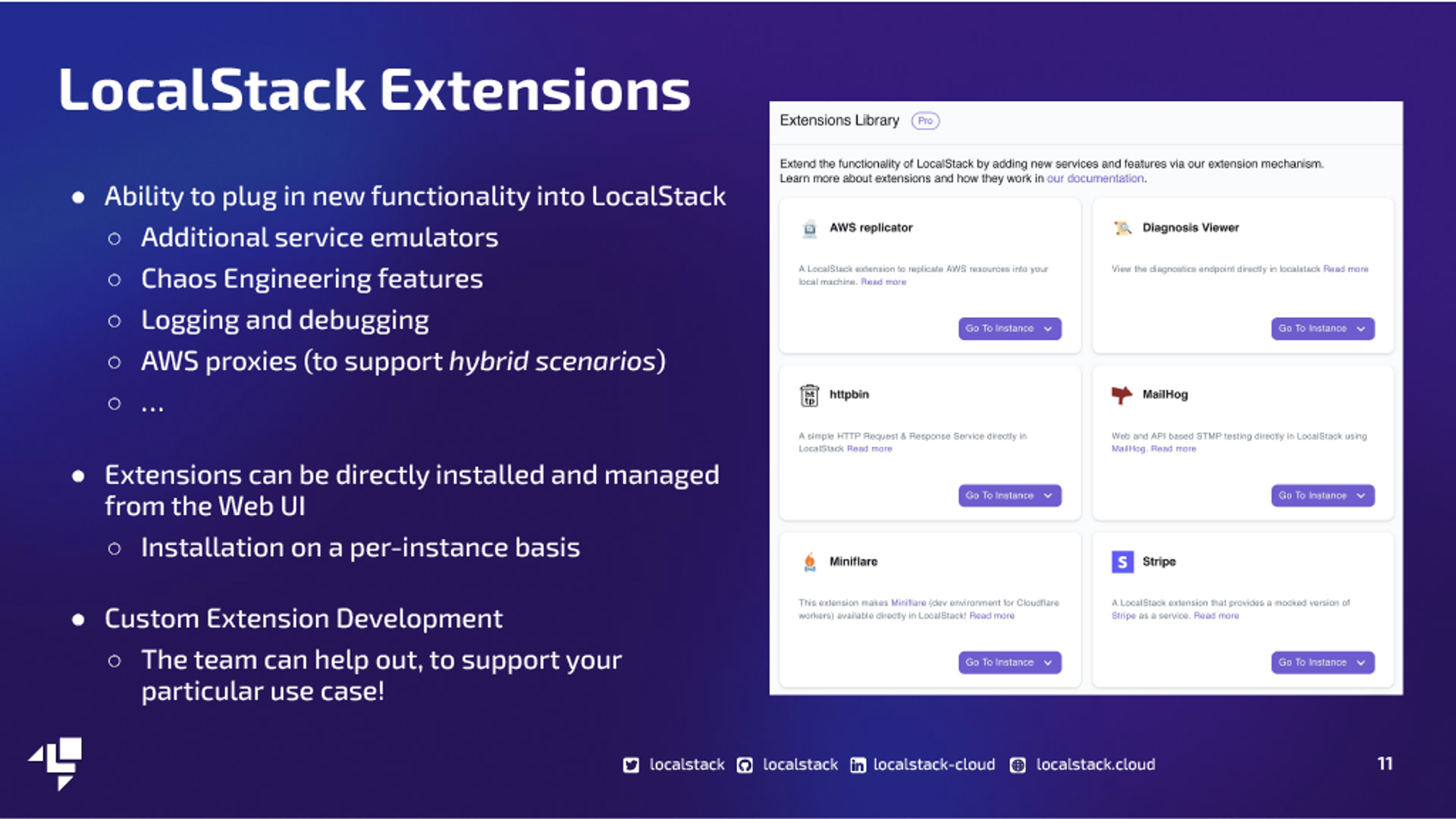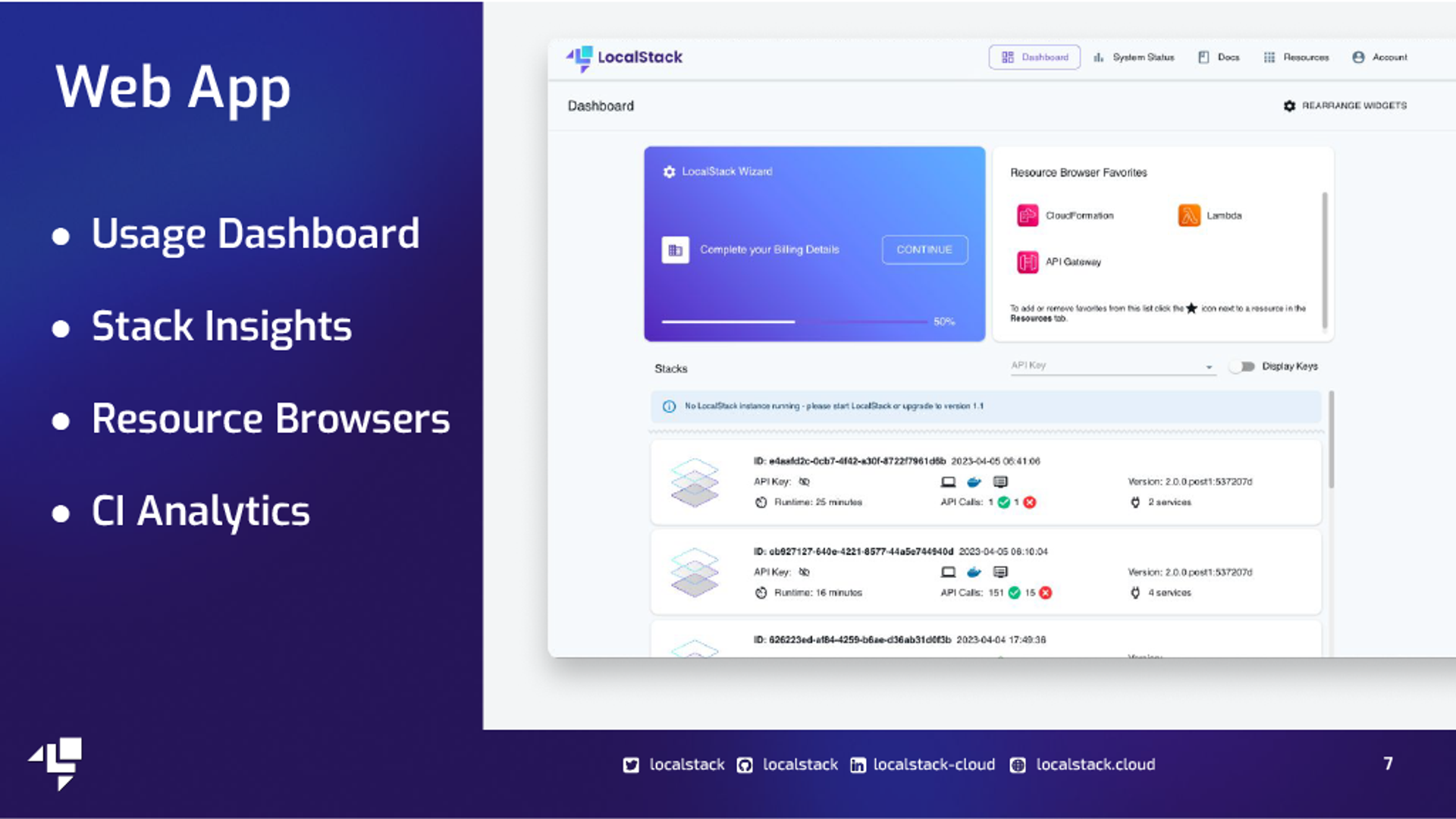 LocalStack provides a comprehensive platform for developing and testing AWS applications locally, offering a significant reduction in development time and AWS costs. It emulates over 80 AWS services, allowing developers to work efficiently without internet access or AWS cloud resources. The tool is designed for seamless integration into existing workflows, supporting favorite cloud development tools and enabling faster deployment and testing. It's widely appreciated in the developer community for enhancing productivity and simplifying cloud application development. For more detailed information, please visit LocalStack's website.