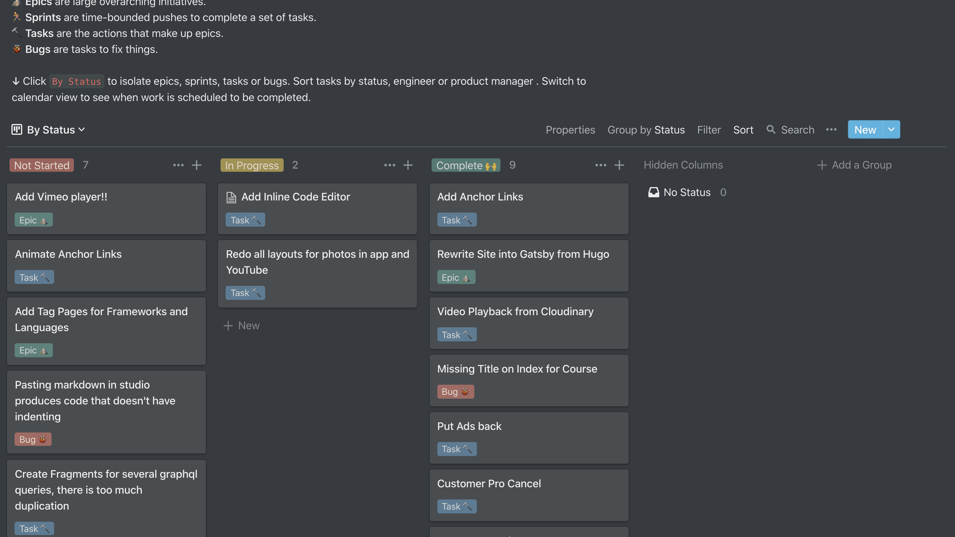 I can then get better about sense of release dates and hard deadlines that I can push myself towards in the calendar view. Here is an example of the videos that I am working towards.