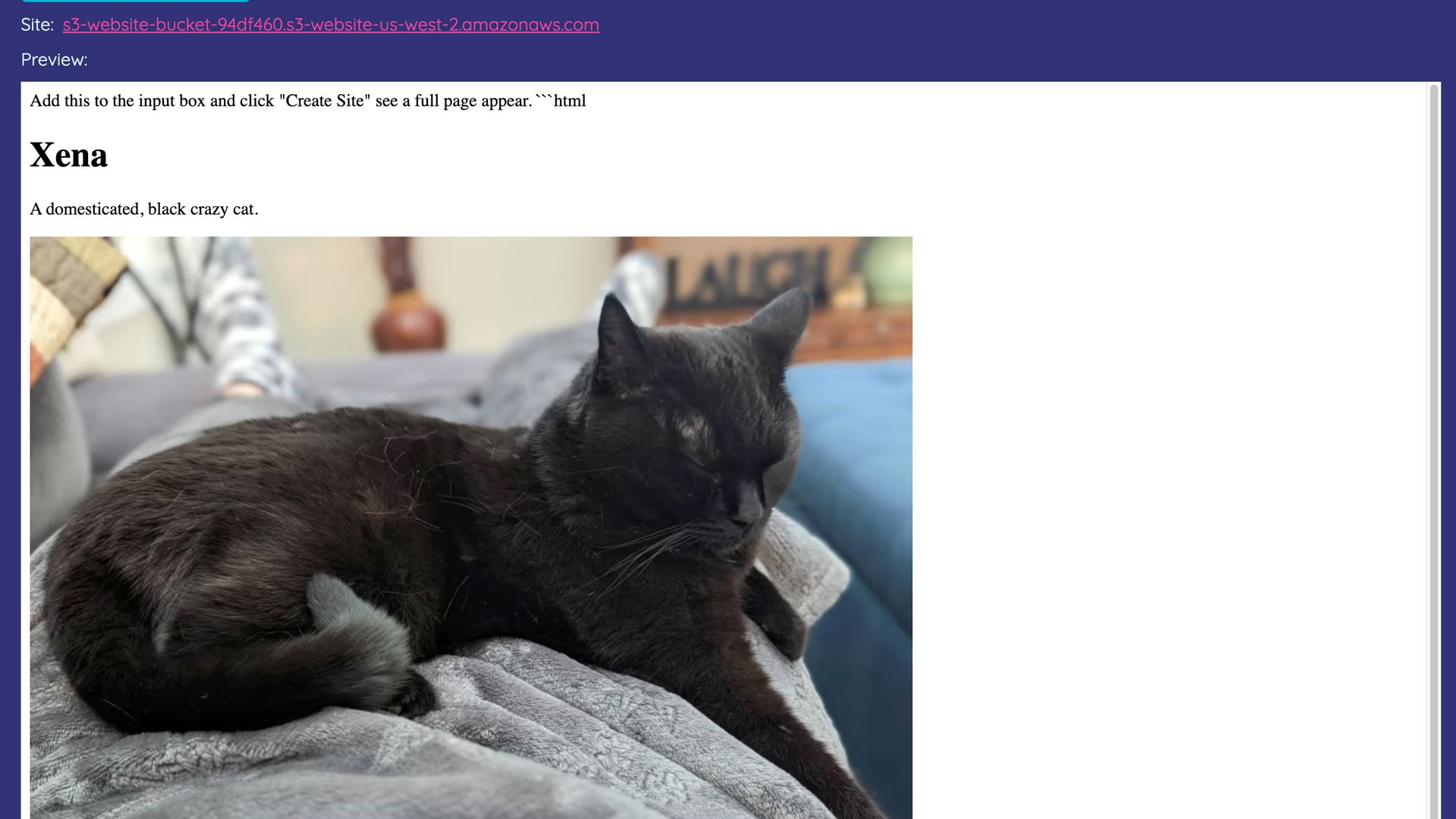 On the homepage add the below code to the input box replacing "Hello World!" and click the "Create Site" button.